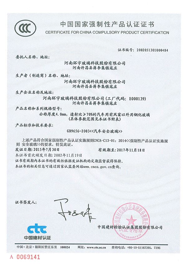 • Xuchang Huanyu Safety Glass Co., Ltd. ,formally founded on Oct 1st, 2004