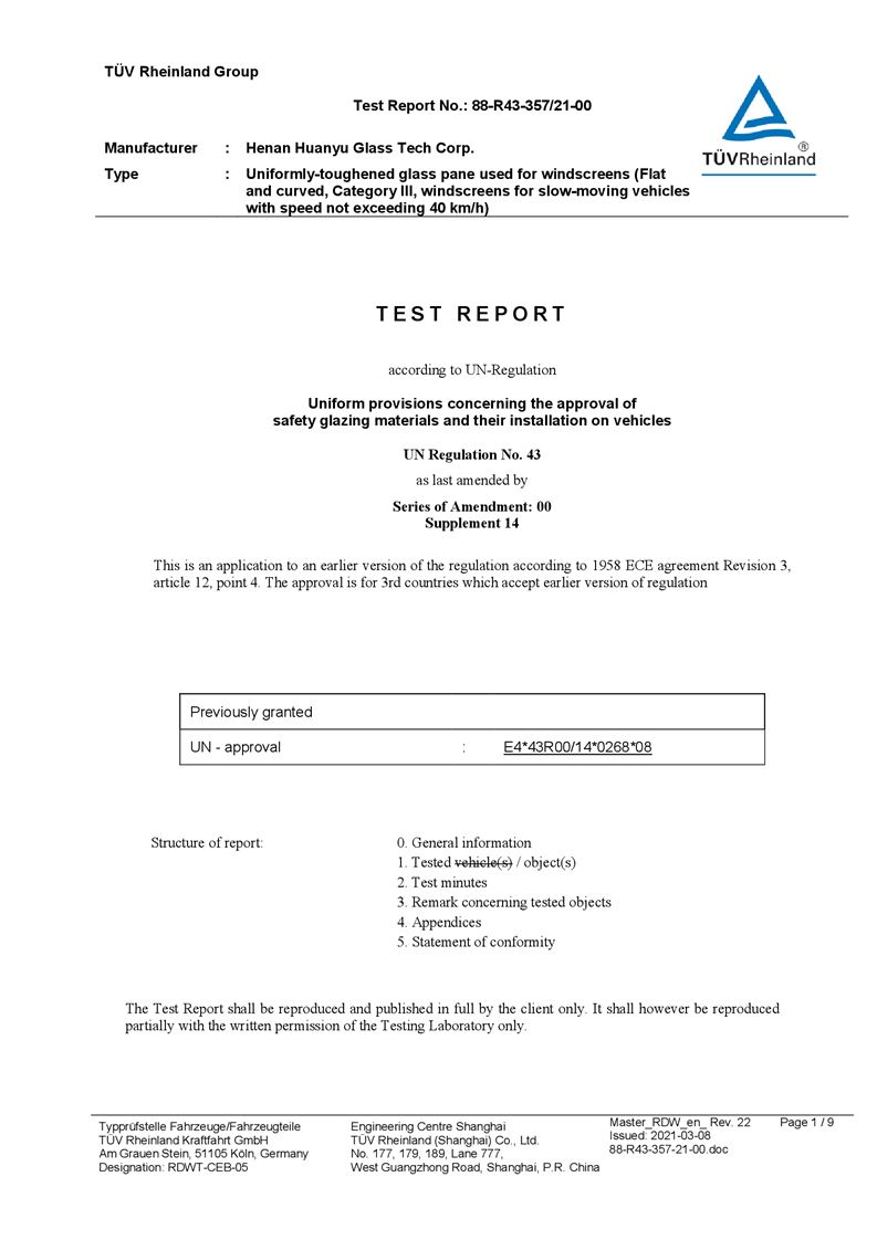 河南環(huán)宇玻璃科技股份有限公司年產(chǎn) 5 萬平方米驗(yàn)收?qǐng)?bào)告公示