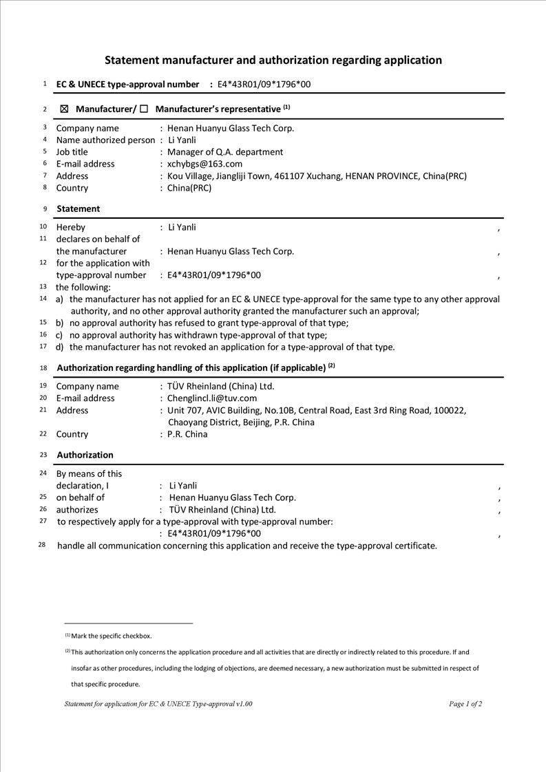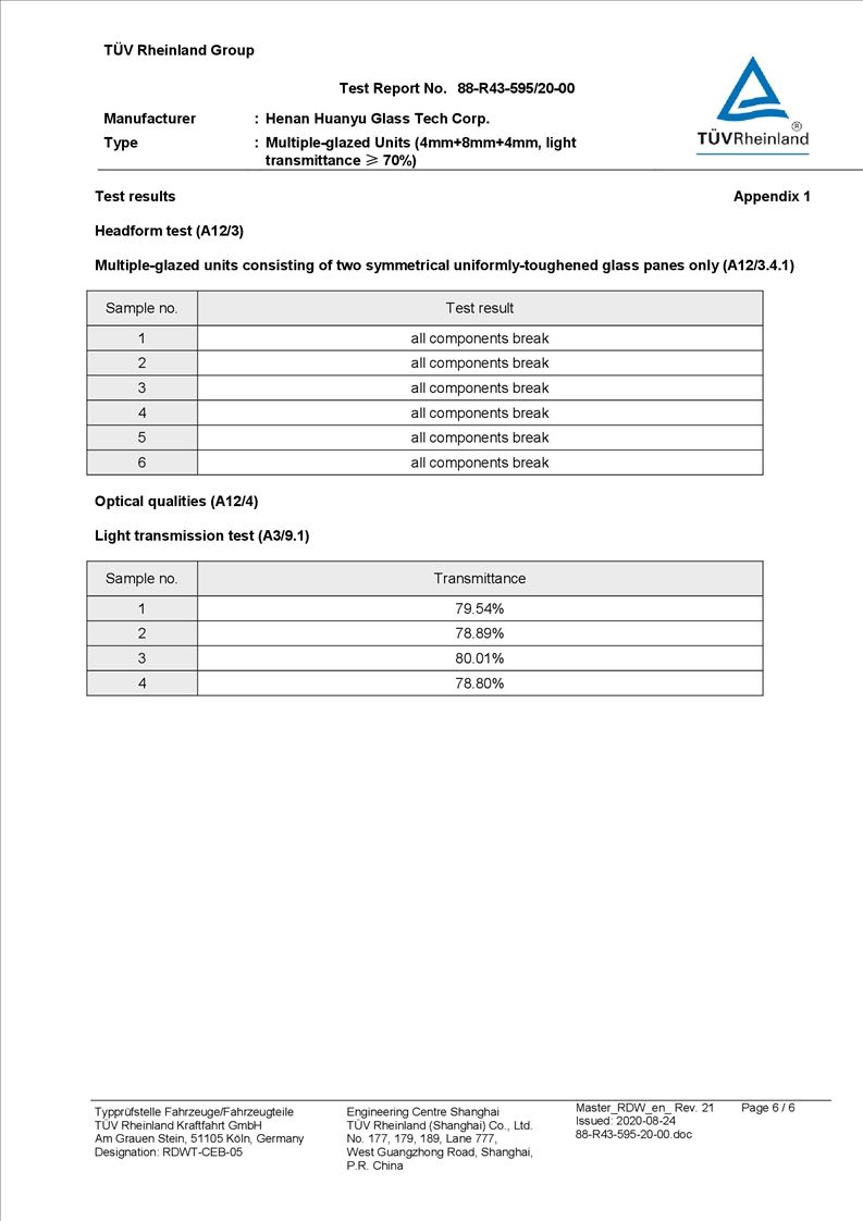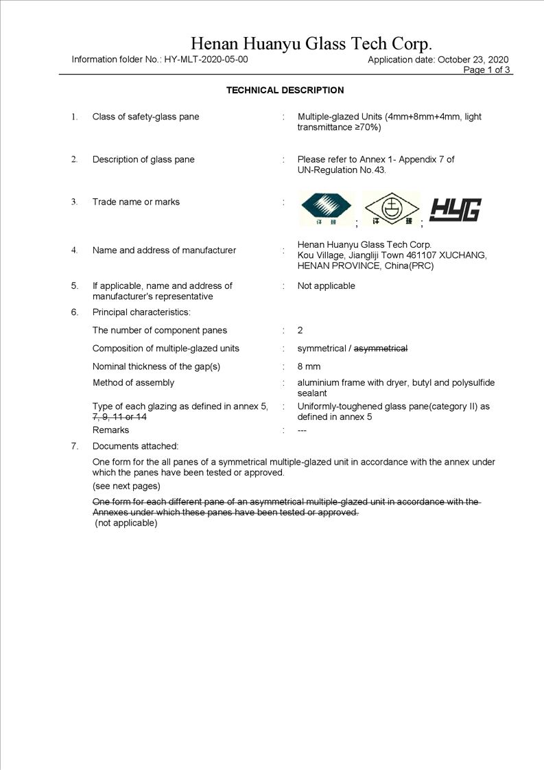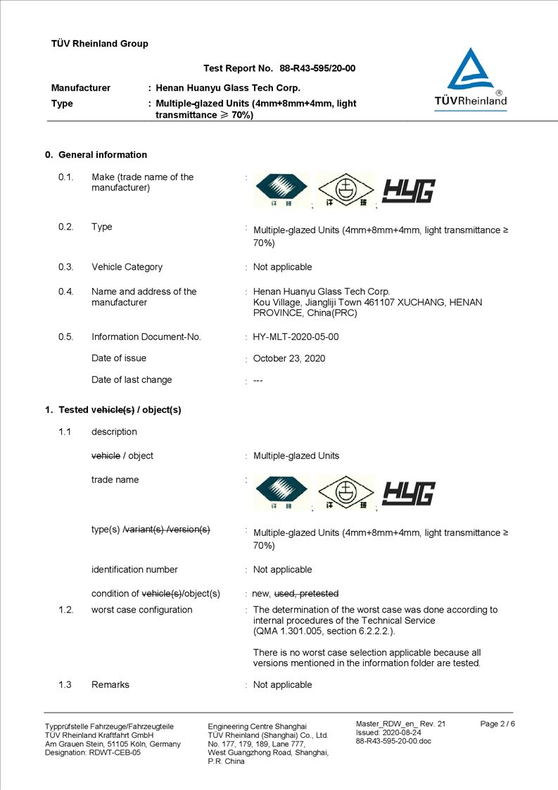 河南環(huán)宇玻璃科技股份有限公司年產(chǎn) 5 萬平方米驗(yàn)收報告公示