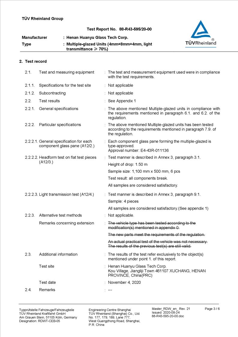 河南環(huán)宇玻璃科技股份有限公司年產(chǎn)35萬平方米驗(yàn)收報告公示